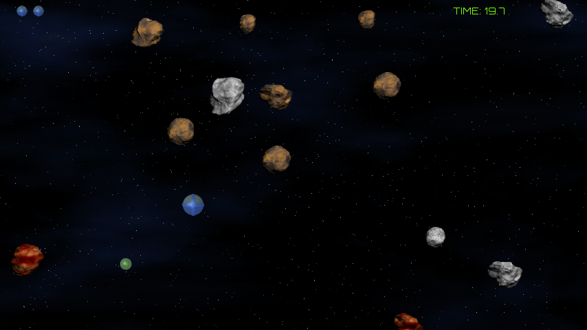 Survive as long as possible in deep space avoiding the rocks and collecting power-ups for your ship.