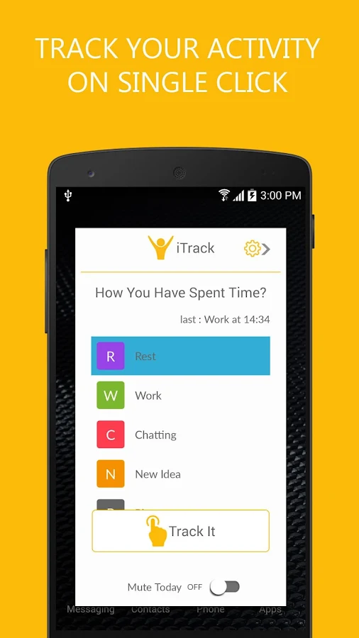 How you spent your time ? work , chat , gossip , surfing , sleeping , exercise , doing nothing !! don't really know ? let iTrack do a tracking of your time spent and present you a report to improve yourself.