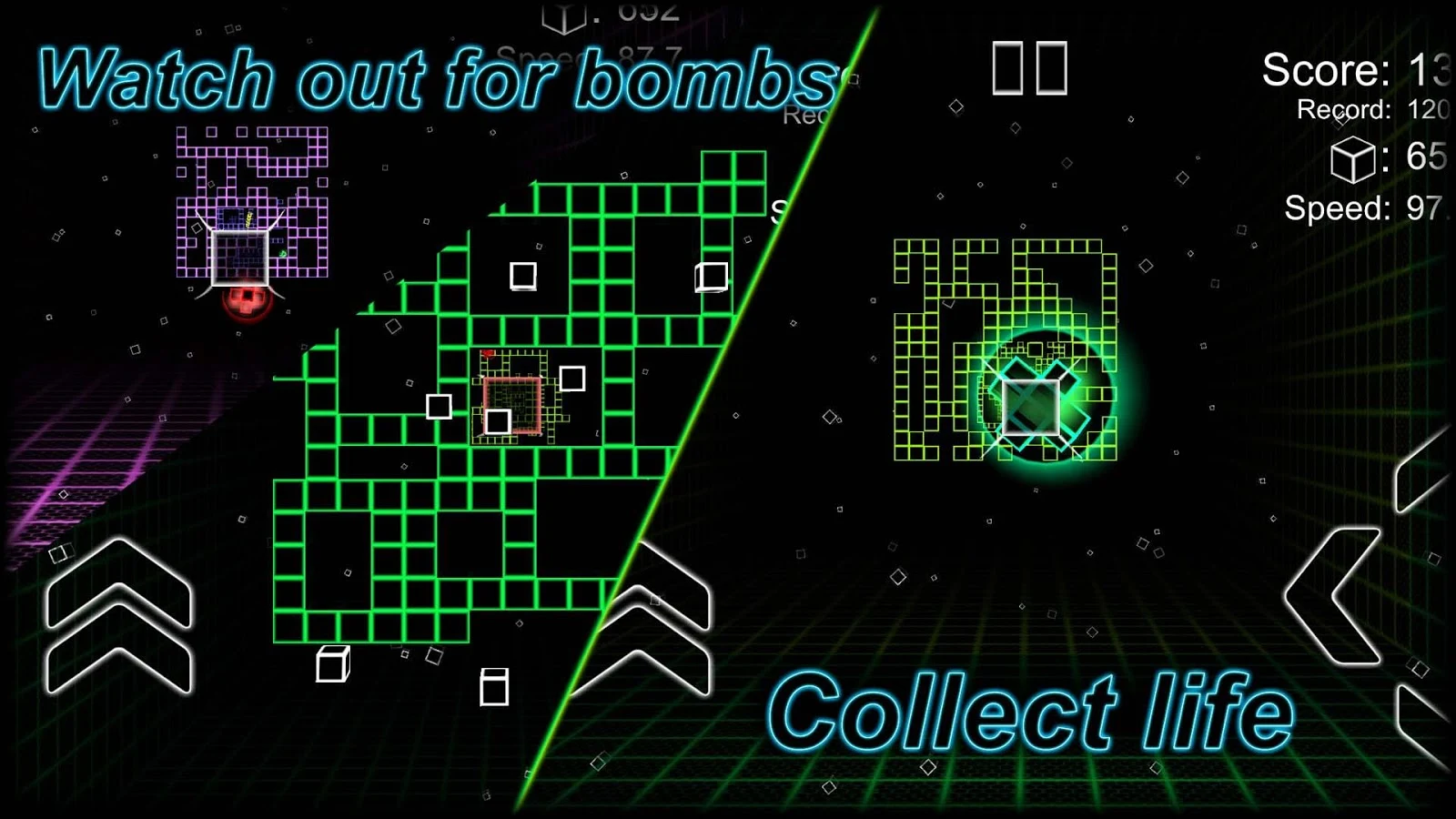 Pass through the platforms as fast as possible to earn more points and try to get the highest score. Climb to the top of the leader boards and keep your records! Avoid the bombs to not lose life, collect cubes for future games and collect life points to keep playing. Let yourself be carried away by the music and the beautiful and colorful 3D graphics.